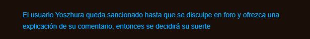 Y tengo que resaltar una cosa, usted Paget, en ningun momento en mi post me pidio que me disculpara pare reducir la sancion solo me puso un comentario "Buenas Noches, para ser atendido debe editar el título del post como indica" y este link https://naerzone.com/reino/post.php?r=t&nCat=132&nId=44281 en cual no dice nada de una disculpa, el cual solo explica de como son las normas del postear algo. De otra forma me habria disculpado y nos habriamos AHORRADO todo esto que escribi.